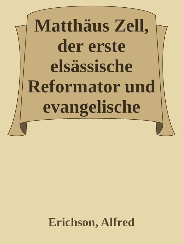 Erichson, Alfred – Matthäus Zell, der erste elsässische Reformator und evangelische Pfarrer in Straßburg_